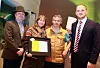 Fra venstre Bernt Bucher Johannessen (daglig leder i Hanen), Trine Lyrek og Johnny Trasti ved Trasti & Trine og landbruks- og matminister Jon Georg Dale. (Foto: Vidar Alfarnes)