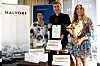 Fagsjef Spesialitet (Matmerk), Marit Strand, tildeler Halvor Hansen Spesialitet-merket for hans boknafisk. I bakgrunnen Liv Margrethe og Viggo Valle. (Foto: Maren Nordtorp Larsen/Matmerk)