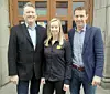 Medeier i Banken Hotel, Leif Harald Endresen (fra venstre), hotellsjef Camilla Husby og Smarthotels kjedesjef Ørjan Kjærstad. (Foto: Smarthotel)