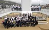 Ansatte på Havila Castor på plass før skipet la fra kai i Bergen tirsdag 10. mai. (Foto: Havila Kystruten)
