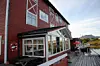 Ute på bryggekanten er det bygd en glassveranda, der gjestene stortrives når været rusker som mest.