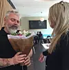 Wenche Salthella, bransjesjef For NHO Reiseliv Vest delte smilende ut en blomsterbukett til Bien som gode ambassadører.