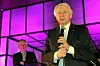 Jan E Rivelsrud mottok Horecabransjens Ærespris av juryleder Kristin Krohn Devold. (Foto: Morten Holt)