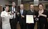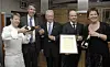 Rica Nidelven vant frokostkåringen for femte gang. Fra venstre jurymedlem Lars Erik Underthun, Stephen Twining (Twinings), Bjarte Gjerde (Rica Nidelven), Lars Erik Vesterdal (Rica Nidelven) og jurymedlem Wenche Andersen. (Foto: Trond Husebø)