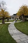 Gangveien som fører fra hotellet til Paviljongen, der frokosten på Refsnes Gods nå serveres. (Foto: Morten Holt)