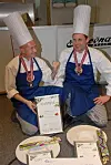Christian Andersen Holden (til venstre) og Dag Rasmussen jubler etter gullmedaljen i NM i institusjonskokkfaget 2011 på Smak.