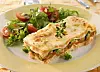 Den er laget av ferske lasagneplater med egg lagt lagvis med bechamelsaus, laks, tomatsaus med brokkoli og toppet med ost.