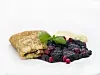Pannekake med bær og vaniljekrem.
