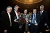 Prisvinnerne: Fra venstre Erik Gudbrandsen (Ernst & Young), Jan Magnus Kleven (Bunker Oil), Petter Stordalen (Choice Hotels Scandinavia), Geir Egil Roksvåg (Nordfjord Kjøtt), og Erik Mamelund (Ernst & Young). Foto: Per Thrana)