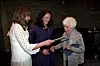 Ingrid Espelid Hovig Matkulturpris 2011 gikk til Christin Løkke Hagen og Kirsty McKinnon, som her overrekker kokebok fra skoleelever på Tingvoll til Ingrid Espelid Hovig. (Foto: Flemming Støldal)