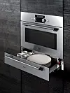 Nytt er de små yttermålene: Ovnene og kaffemaskinen er 46 cm høye, mens varmeskuffen har en høyde på 14 cm. Kombinerer man disse to, blir dette totalt 60 cm, som er standardmålet til en vanlig stekeovn for innbygging. Velger man for eksempel å beholde en stekeovn av standardformat, kan man likevel kombinere den med de nye modulene.