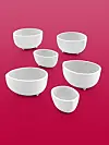 Mugger i tre ulike størrelser uten hank. Muggene har volum på 30 cl, 15 cl og 8 cl, og passer godt til fløte, melk, dressinger, soyasaus etc.