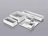 Figgjo Boks består av 5 firkantede boller og en tallerk (se under Figgjo Kombinasjonstallerker). Alle har et stramt formspråk og er meget rettvinklede. Produktene har ulike volum og bruksmuligheter, fra kuvert til buffetservering. Den kraftige kanten gjør at de passer også godt sammen med de nye produktene Figgjo Sylinder og Figgjo Ekorn.