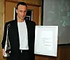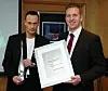 Lasse Jørgensen (til venstre) i Avansert Emballasje fikk overrakt Alufoil Trophy fra Guido Aufdenkamp for produktet Easybag Cooking.