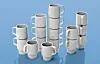 Kruset har et karakteristisk uttrykk kombinert med effektiv stabling. Store flater gjør disse stablekrusene dekorvennlige.