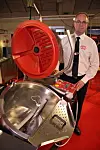 Per Ola Lindpil i Getinge Storkök ved siden av kokegryten M3. (Foto: Morten Holt)