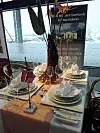 Fra borddekningskonkurransen på Smak 2011. Dette bordet er kreert av Marcus Weis fra Soria Moria kurs- og konferansesenter og Kristine Pedersen fra Oslo Militære Samfund. (Foto: Heidi Fjelland)