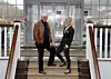 Laila Aarstrand sammen med eier Stig Fische ved inngangen til Støtvig Hotel. (Foto: Morten Holt)