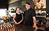 Evelyn Tanguy Skeide og Rune André Vestheim Skeide i spiseriet Soltinn, der også hotellets gjester spiser frokost. (Foto: Morten Holt)