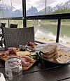 Utsikt mot Romsdalen fra frokostbordet. (Foto: Morten Holt)