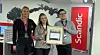Scandics kundesenter har vunnet «Kundeserviceprisen» to år på rad. Her er Ane Natvig, Camilla Elvenes og teamleder Martin Ervik med fjorårets seiersbevis. Kundesenteret har per dags dato 12 ansatte. (Foto: Scandic Hotels Norge)