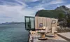 En av sjøhyttene på Manshausen i Steigen med Engeløya i bakgrunnen. (Foto: Morten Holt)