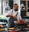 Soussjef Sayed Ibrahim tilbereder bacon på kullgrillen.