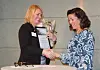 Linn Dyrkorn fra Radisson Blu Alna Hotel mottar Ringer i Vannet-prisen av NHO-leder Kristin Skogen Lund.