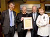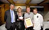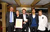1. plass: Rica Nidelven Hotel. Fra venstre: Stephen Twining, Lars Erik Vesterdal (F&B Manager) og Bjarte Gjerde (hotelldirektør), Lars-Erik Underthun (juryformann).(Foto: Trond Husebø)