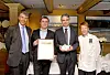 4. plass: Rica Hell Hotel. Fra venstre: Stephen Twining, Arild Vollan (F&B Manager) og Rune Nordstokke (hotelldirektør) og Lars-Erik Underthun (juryformann). (Foto: Trond Husebø)