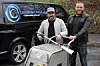 Kim Andersen og Hans-Petter Nygaard med maskinen som brukes til tørris-rengjøringen. (Foto: Morten Holt)