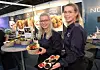 Ina Seljestad Flaatin (til venstre) og Iselin Jakobsen driver Husly Kafé & Catering i Bø, og på Østlandske Storhusholdning sto de på Norice Seafoods stand. Husly Kafé & Catering i Bø er nominert som finalist i «NM i sunn fastfood» 2021. (Foto: Morten Holt)Click to add image caption