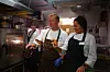 Det handler om å lære. Frode og Arne gikk gjennom menyen før oppgavene ble tildelt. Kjøkkenleder Moksheim ble satt i oppvasken for anledningen, og de andre fikk ulike oppgaver.