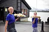 Ulrika Toftered og Anna Fischer iler over til Nansenstua med nystekte munnfuller. Snart ligger de på disken og roper på oss. (Foto: Lise Bjelland)