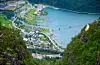 Loen Skylift, som ble åpnet av Dronning Sonja i mai 2017, tar deg opp til Hoven, der du foruten å bli belønnet med en utsikt langt utenom det vanlige, også finner en restaurant.