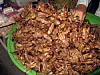 Innsekter spises i dag av om lag to milliarder mennesker på kloden. Her friterte sirisser på et marked i Kambodsja.