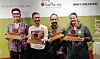 Ferske norgesmestere: Fra venstre Anton Söderman (Latte Art), Adrian Berg (Barista Championchip), Ole Kristian Bøen (Brewers Cup) og Ingrid Aas (Cup Tasting). (Foto: Norsk Kaffeinformasjon)