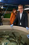 Fiskeriminister Odd Emil Ingebrigtsen besøkte nylig Polarfisks anlegg i Meløy i Nordland, og lot seg imponere. (Foto: Liv Toril Pettersen)