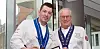 Gunnar Jensen (til venstre) blir ny kaptein for juniorkokkelandslaget. Her sammen med president i NKL, Helge Johansen. (Foto: NKL)
