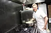 Nåvik har mye erfaring, bobler over av kreativitet og er en gledesspreder. Han jobber med varmmaten, «gallafatet» og garnityrer til kaldmatbordet.