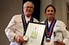 Styreleder i NKL Trondheim, Camilla Johansen, mottok prisen «Årets kjøkkensjef» på vegne av Renee Fagerhøi. Til venstre president i NKL, Helge Johansen. (Foto: NKL)
