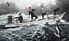 Christopher Davidsen (fra venstre), Fredrik Ringe og Karl Erik Pallesen på ”fisketur” for å hente råvarer til førstkommende helgs popup-middag. (Foto/illustrasjon: Fredrik Ringe)
