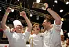 Karl Erik Pallesen (til venstre) var coach da Christopher W. Davidsen vant Årets kokk i 2016. I midten commis Håvard Werkland. (Foto: Morten Holt)