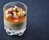 Klassisk norsk fløtekrem med Tahitivanilje, mandaringele og -sorbet, korianderskudd, blomster og pikekyss.