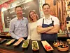 Lise Sundberg, som driver Kafé Krydder i Sogndal, sammen med messegeneral Konrad Sel (til venstre) og Vegard Halden Vinje hos Oluf Lorentzen. (Foto: Morten Holt)