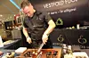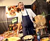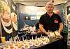 Fargerik stand hos Jæder.  Her tilbereder Espen Solgaard slidersbrød med hvitløksmør fra Mills. (Foto: Morten Holt)