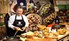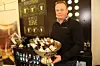 Torbjørn Møllerop fra Pers Kjøkken serverer ribbe, pinnekjøtt og pølse, produsert av bedriften i Sandefjord. (Foto: Morten Holt)