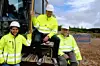 Etter at 250 000 kubikk med fjell er fjernet på tomta på Liertoppen utenfor Drammen kan anleggsleder Simen Herregården Thrygg (t.v.), daglig leder Kristian Lindland og produksjonsleder Kåre Ranvik i Alento starte byggearbeidene på Caters nye felles sentrallager.