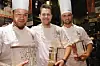 De tre pallvinnerne i Årets kokk 2015; fra venstre sølvvinner Christian A. Pettersen, vinner Christopher W. Davidsen og bronsevinner Øyvind B. Dalelv. (Foto: Morten Holt)