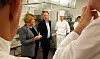 Fylkesråd for utdanning Hild-Marit Olsen hadde en god nyhet med seg da hun besøkte elever og lærere på matfag ved Vestvågøy videregående skole på Gravdal. På bildet er hun sammen med ordfører i Vestvågøy kommune, Remi Solberg. (Foto: NFK)